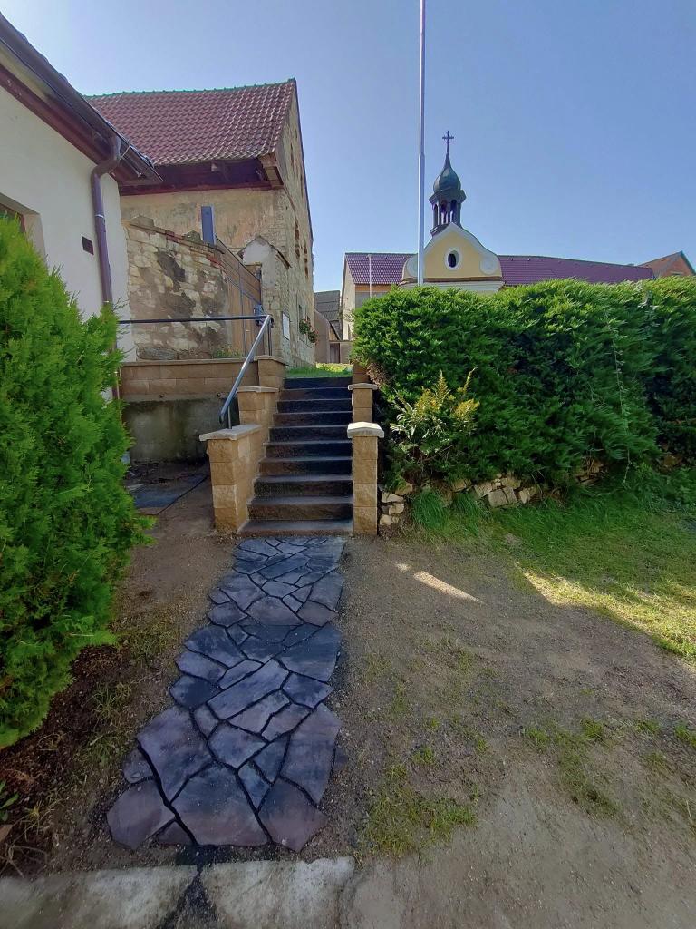 září, říjen 2024 - oprava střechy a schodů, nové lavičky, rekonstrukce úřadu
