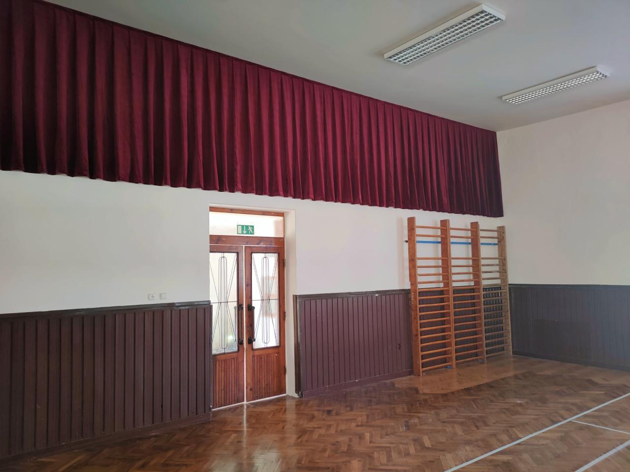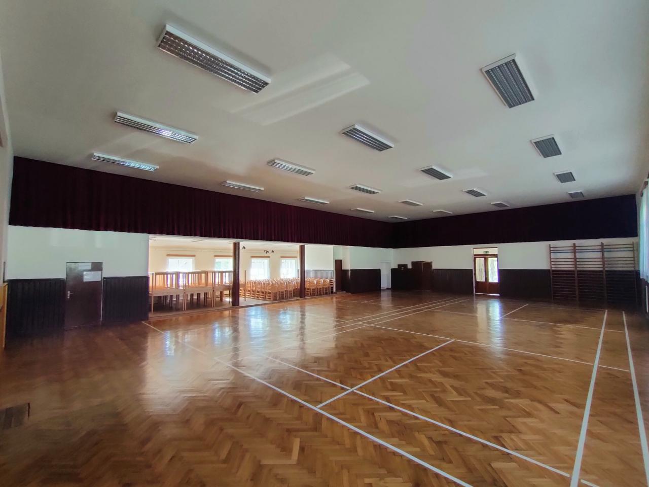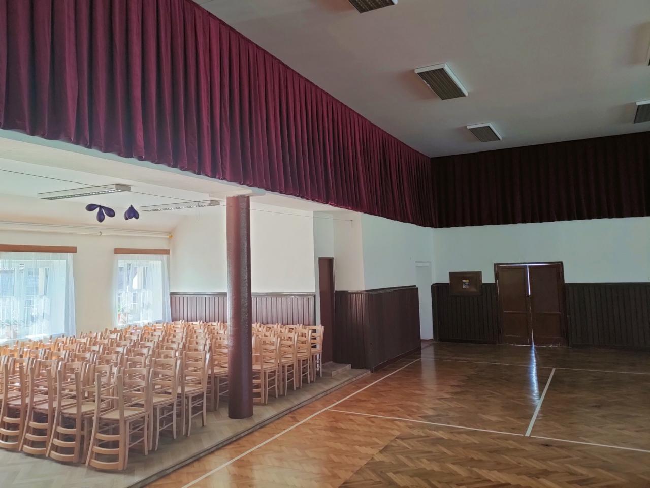 červenec 2025 - úprava sálu sokolovny, oprava chodníků
